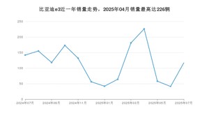 近日,2025年7月份乘用车销量数据出炉,众车网行业监测数据表明:比亚迪e3在7月共售出117辆新车,同比下降17.61%,占比亚迪当月总销量的0.16%,在自...