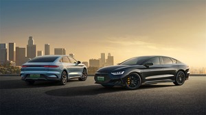 四门轿跑式车身,风阻系数仅为0.233Cd,全系为新能源动力。