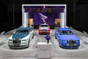 劳斯莱斯Bespoke高级定制新作“自我表达之道”亮相2024北京国际汽车展览会,包含古思特长轴距版、幻影长轴距版及闪灵三款车型.