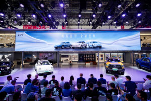 4月26日,长城炮霸屏2024北京车展。长城炮聚焦乘用休闲、时尚商用品类双赛道打造的两款创新力作——2.4T乘用炮和2.4T商用炮,正