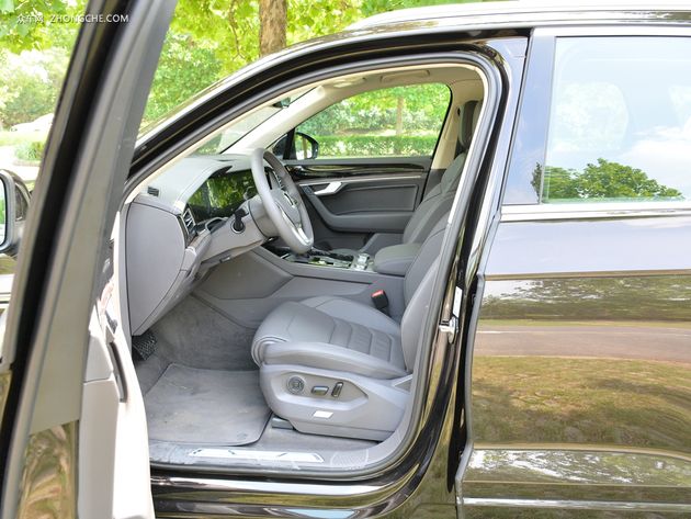 途锐全系配备皮质座椅,前排座椅电动调节,后排座椅按比例放倒,行李箱容积为810-1800升。顶配车型还增加了电动座椅记忆等功能。