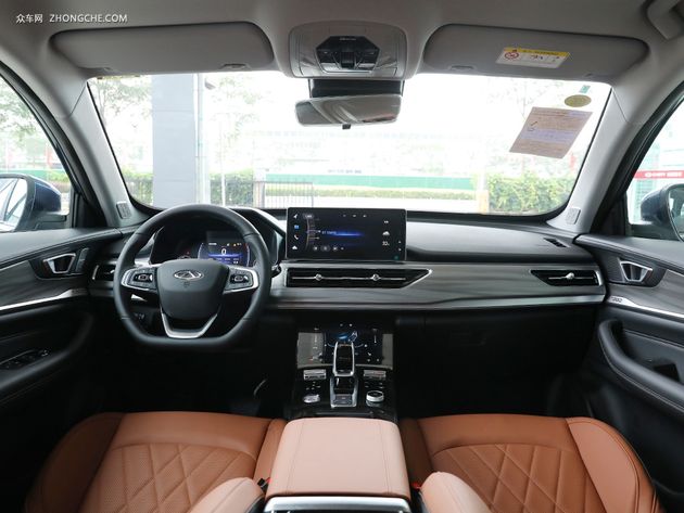 瑞虎8全系配备皮质座椅,后排座椅按比例放倒,行李箱容积为193-1930升等功能。