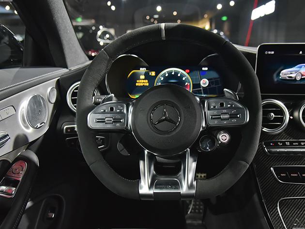 奔驰C级AMG顶配车型配备的9挡手自一体变速箱,4发动机最大功率375kW,峰值扭矩700Nm,平均油耗为10.7升。前后悬挂为多连杆式独立悬挂。