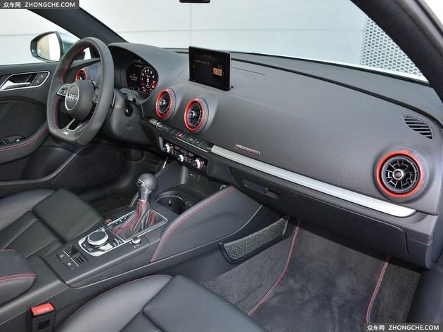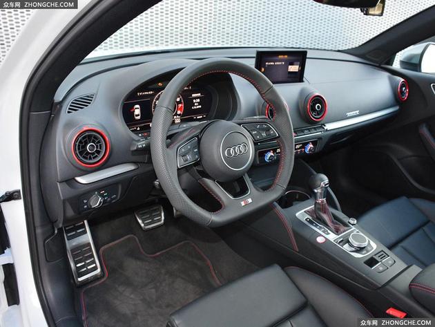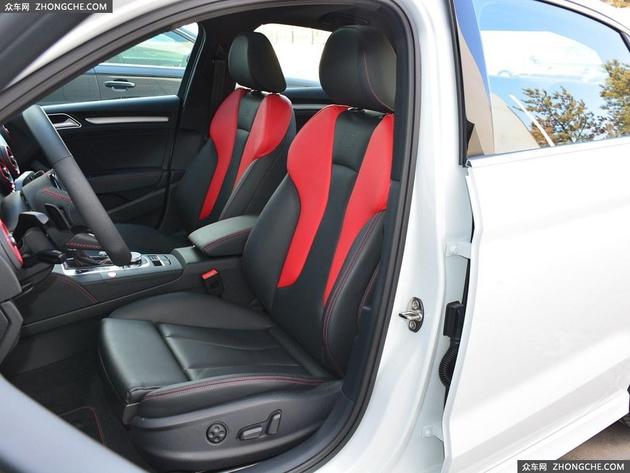 奥迪S3全系配备皮质座椅、前排座椅电动调节、后排座椅按比例放倒,行李箱容积为390升等功能。