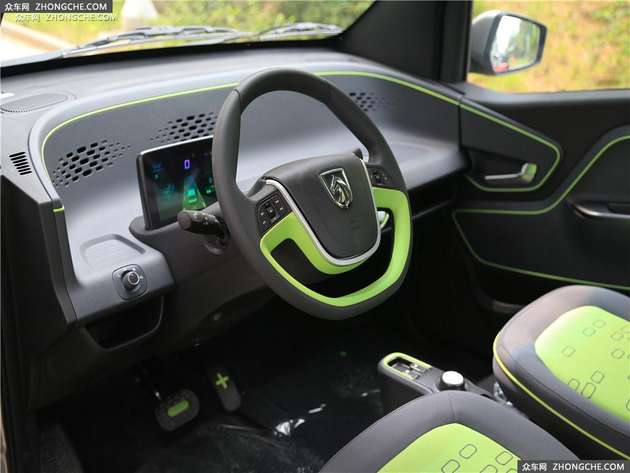 宝骏E100全系配备前轮胎规格为145/70 R12,顶配车型还配备了无钥匙启动系统、倒车影像等功能。