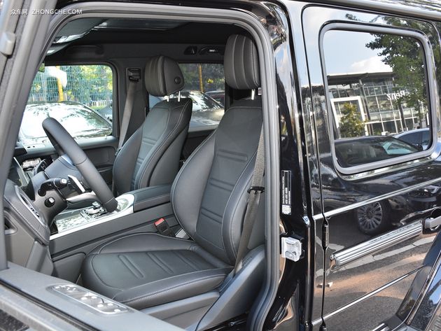 奔驰G级全系配备皮质座椅、前排座椅电动调节、后排座椅按比例放倒。顶配车型还增加了电动座椅记忆等功能。