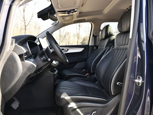荣威iMAX8全系配备皮质座椅,前排座椅电动调节,后排座椅按比例放倒。顶配车型还增加了电动座椅记忆等功能。