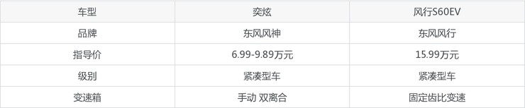 奕炫和风行S60EV参数对比
