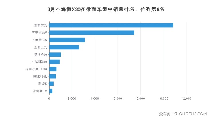 3月份小海狮X30在微面市场销量第6名,占比3.18%