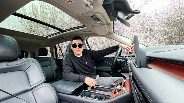 坐进车里,内饰一眼就能看出是美式的设计风格,深色木纹的装饰条,看上去稍稍有些老气,手能接触到的地方基本都是皮质材料包裹,豪华感还是很不错的。多功能方向盘操作很方便,支持四向调节,带记忆和加热功能。飞行家全系标配了12.8英寸的触控大屏,还有一块12.8英寸的触控液晶屏,开机时很有仪式感,整体操作很流畅,支持语音互联功能。保留了很多物理按键,操作起来很方便,同样采用了设计新颖的按键式换挡。在我们拿车的那天正好赶上北京沙尘暴,这套新风管家系统派上了用场,它能够智能的切换内外空气循环,有效过滤PM2.5等微颗粒物。